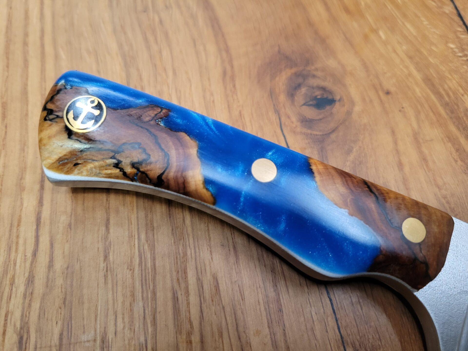 - Griffaufbau: stabilisierte Kastanie mit Epoxy Bora Bora