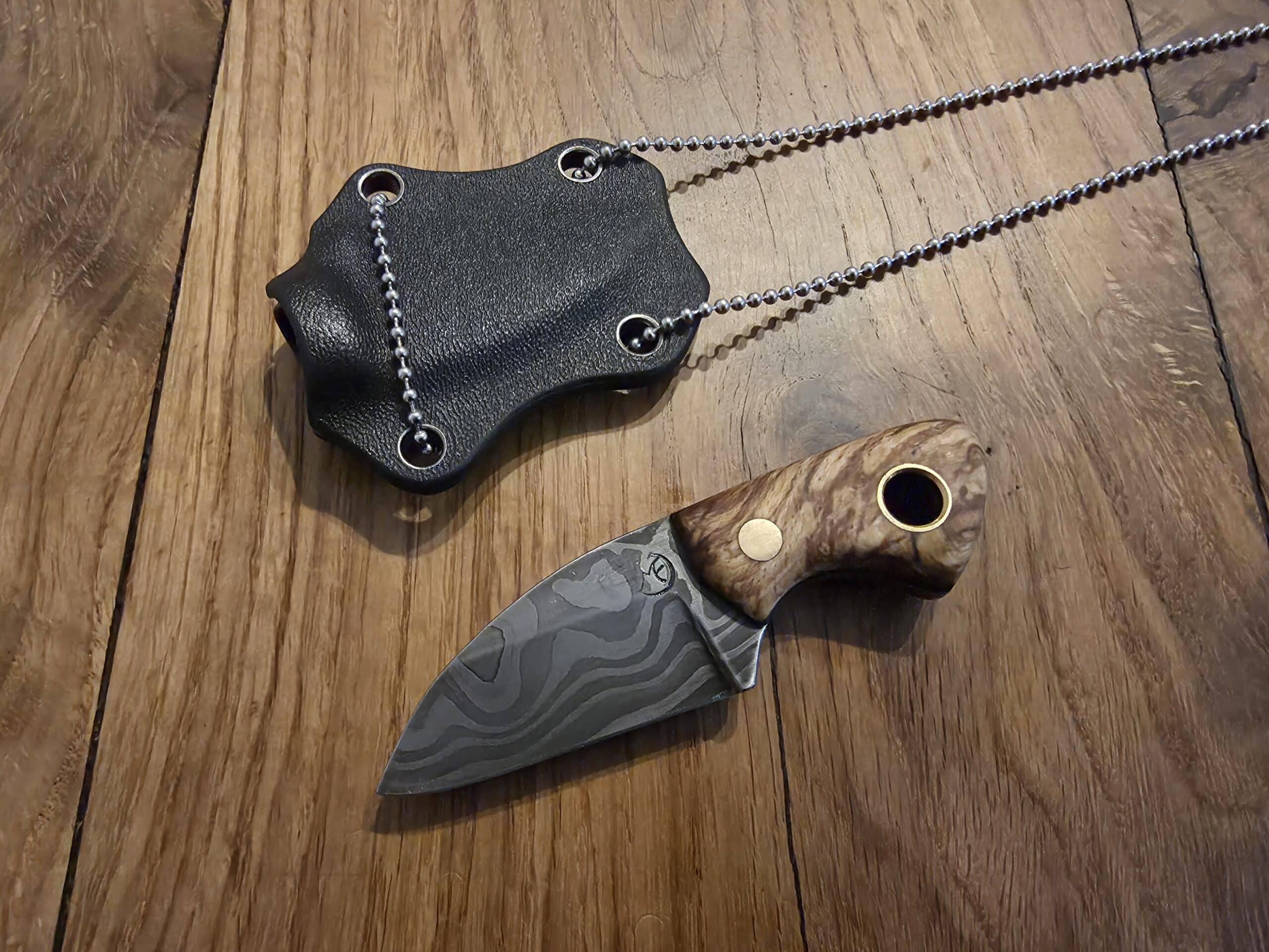 Damast Neck- Knife – A0072 / 250 € Dezember 17, 2025 / EDCs, Jagd- und Alltagsmesser Beschreibung Material Abmessungen
