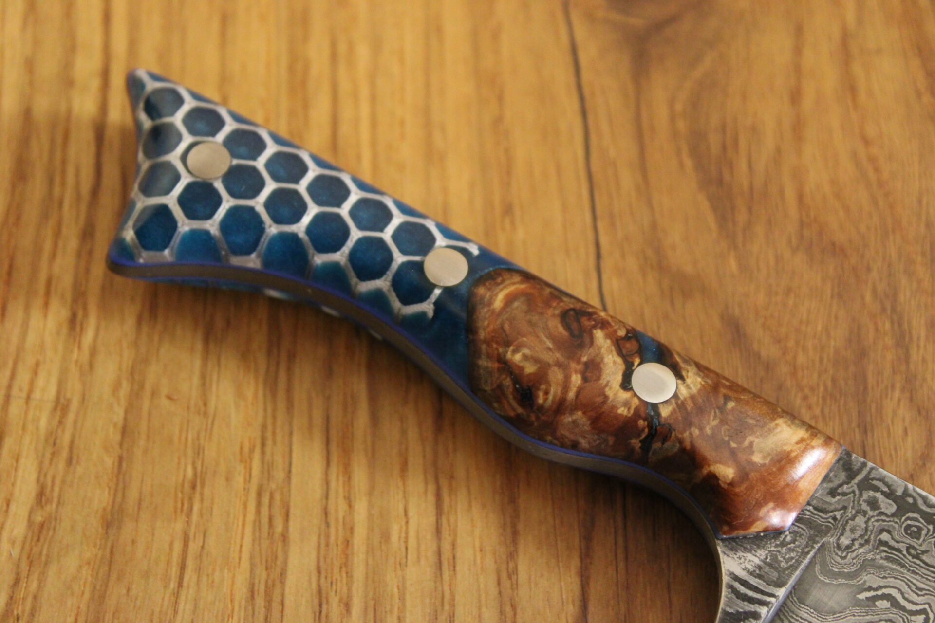 - Griffaufbau: stab. gestockter Apfel und Epoxy blau mit Waben
